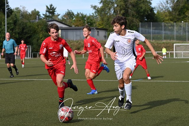 Fussball, Rheinlandliga, C-Junioren, JSG Altenkirchen (rot) vs. FC Rot Weiss Koblenz (weiss), 07.09.2024 |