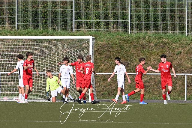 Fussball, Rheinlandliga, C-Junioren, JSG Altenkirchen (rot) vs. FC Rot Weiss Koblenz (weiss), 07.09.2024 |