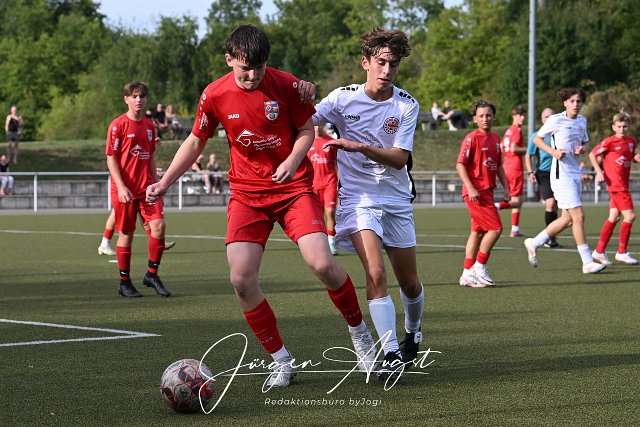 Fussball, Rheinlandliga, C-Junioren, JSG Altenkirchen (rot) vs. FC Rot Weiss Koblenz (weiss), 07.09.2024 |
