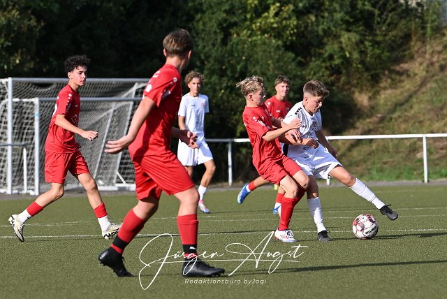 Fussball, Rheinlandliga, C-Junioren, JSG Altenkirchen (rot) vs. FC Rot Weiss Koblenz (weiss), 07.09.2024 |