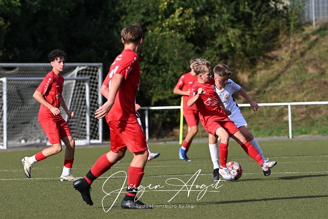 Fussball, Rheinlandliga, C-Junioren, JSG Altenkirchen (rot) vs. FC Rot Weiss Koblenz (weiss), 07.09.2024 |