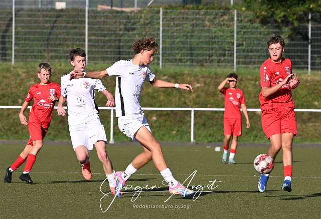 Fussball, Rheinlandliga, C-Junioren, JSG Altenkirchen (rot) vs. FC Rot Weiss Koblenz (weiss), 07.09.2024 |