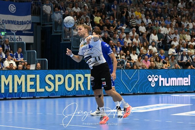 Lasse Pedersen (Mors-Thy Handbold 11) beim 7 Meter Wurf Handball, EHF European Handball Federation, 2024-2025, Qualifikation, Rueckspiel, VfL Gummersbach vs. Mors-Thy Handbold, Schwalbe Arena Gummersbach, .08.09.2024 Foto: Eibner-Pressefoto/Juergen Augst |