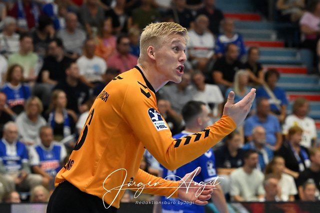 Solobild Bertram Obling (VfL Gummersbach 16) unzufrieden Handball, EHF European Handball Federation, 2024-2025, Qualifikation, Rueckspiel, VfL Gummersbach vs. Mors-Thy Handbold, Schwalbe Arena Gummersbach, .08.09.2024 Foto: Eibner-Pressefoto/Juergen Augst |