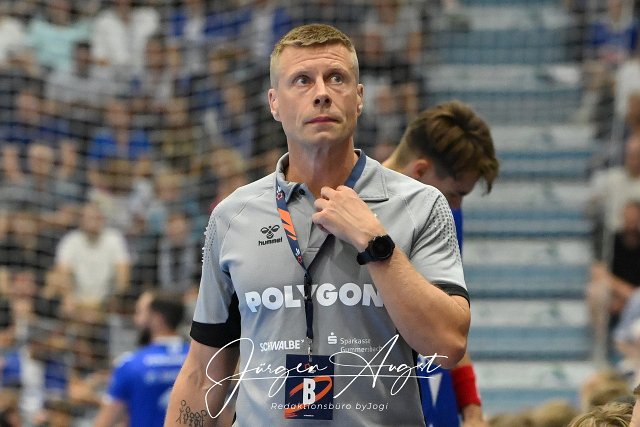 Gudjon Valur Sigurdsson (VfL Gummersbach Trainer) mit sorgenvoller Stirn Handball, EHF European Handball Federation, 2024-2025, Qualifikation, Rueckspiel, VfL Gummersbach vs. Mors-Thy Handbold, Schwalbe Arena Gummersbach, .08.09.2024 Foto: Eibner-Pressefoto/Juergen Augst |