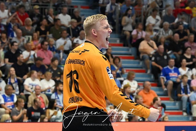 Bertram Obling (VfL Gummersbach 16) schreit seinen Jubel hinaus Handball, EHF European Handball Federation, 2024-2025, Qualifikation, Rueckspiel, VfL Gummersbach vs. Mors-Thy Handbold, Schwalbe Arena Gummersbach, .08.09.2024 Foto: Eibner-Pressefoto/Juergen Augst |