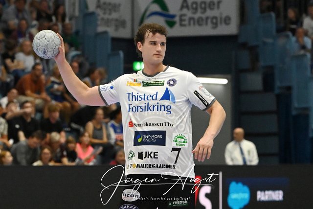 Solobild Nichlas Hald Christensen (Mors-Thy Handbold 7) Handball, EHF European Handball Federation, 2024-2025, Qualifikation, Rueckspiel, VfL Gummersbach vs. Mors-Thy Handbold, Schwalbe Arena Gummersbach, .08.09.2024 Foto: Eibner-Pressefoto/Juergen Augst |