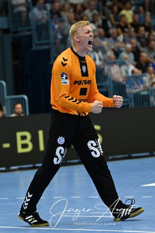 Feude bei Bertram Obling (VfL Gummersbach 16) Handball, EHF European Handball Federation, 2024-2025, Qualifikation, Rueckspiel, VfL Gummersbach vs. Mors-Thy Handbold, Schwalbe Arena Gummersbach, .08.09.2024 Foto: Eibner-Pressefoto/Juergen Augst |