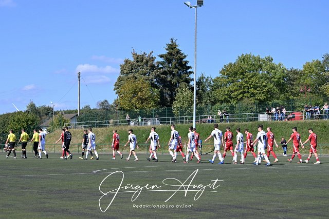 Fussball, Rheinlandliga, SG Malberg (weiß) vs. FV Hunsrueckhoehe (rot), 21.09.2024 |