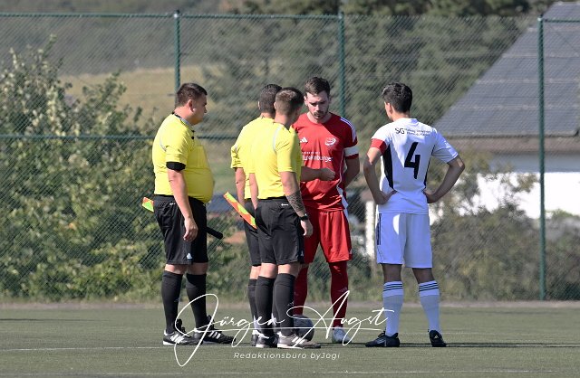 Fussball, Rheinlandliga, SG Malberg (weiß) vs. FV Hunsrueckhoehe (rot), 21.09.2024 |