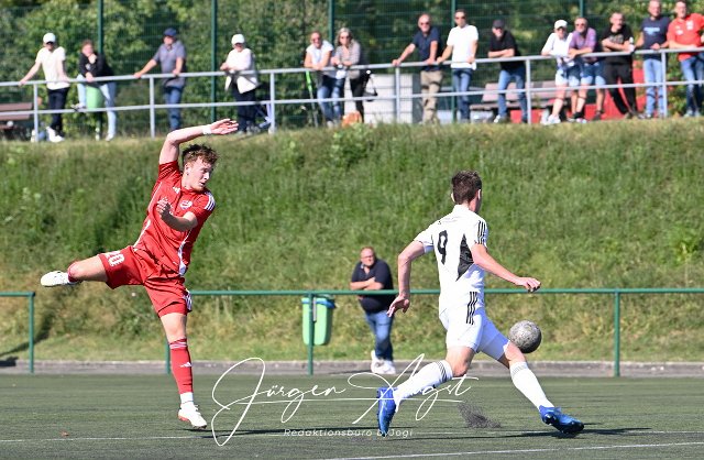 Fussball, Rheinlandliga, SG Malberg (weiß) vs. FV Hunsrueckhoehe (rot), 21.09.2024 |