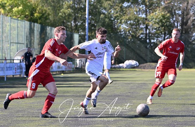 Fussball, Rheinlandliga, SG Malberg (weiß) vs. FV Hunsrueckhoehe (rot), 21.09.2024 |