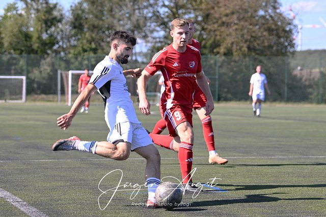 Fussball, Rheinlandliga, SG Malberg (weiß) vs. FV Hunsrueckhoehe (rot), 21.09.2024 |