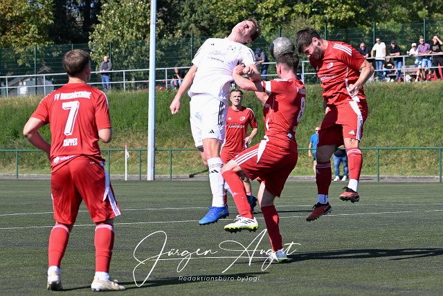 Fussball, Rheinlandliga, SG Malberg (weiß) vs. FV Hunsrueckhoehe (rot), 21.09.2024 |