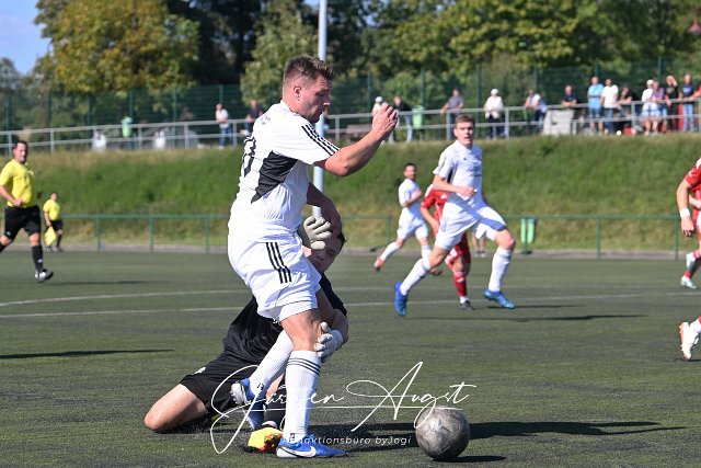 Fussball, Rheinlandliga, SG Malberg (weiß) vs. FV Hunsrueckhoehe (rot), 21.09.2024 |