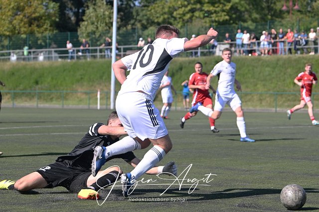 Fussball, Rheinlandliga, SG Malberg (weiß) vs. FV Hunsrueckhoehe (rot), 21.09.2024 |