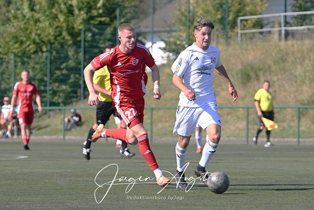 Fussball, Rheinlandliga, SG Malberg (weiß) vs. FV Hunsrueckhoehe (rot), 21.09.2024 |