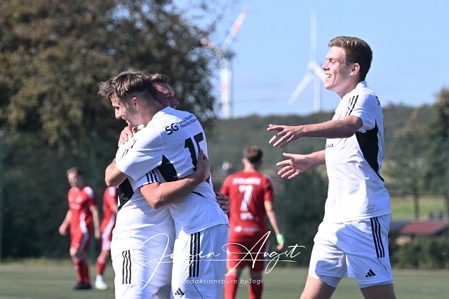 Fussball, Rheinlandliga, SG Malberg (weiß) vs. FV Hunsrueckhoehe (rot), 21.09.2024 |