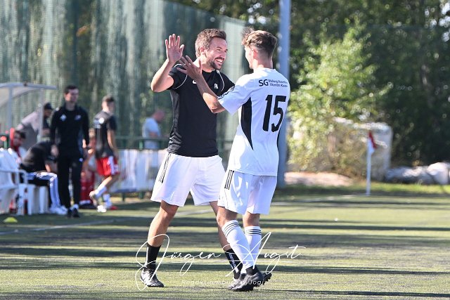 Fussball, Rheinlandliga, SG Malberg (weiß) vs. FV Hunsrueckhoehe (rot), 21.09.2024 |