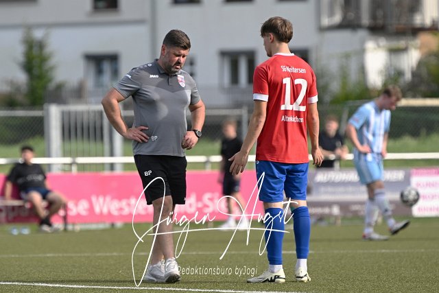 Fussball, Bezirksliga Ost, SG Neitersen-Altenkirchen (rot-blau) vs. SG Wallmenroth (hellblau), 22.09.2024 |