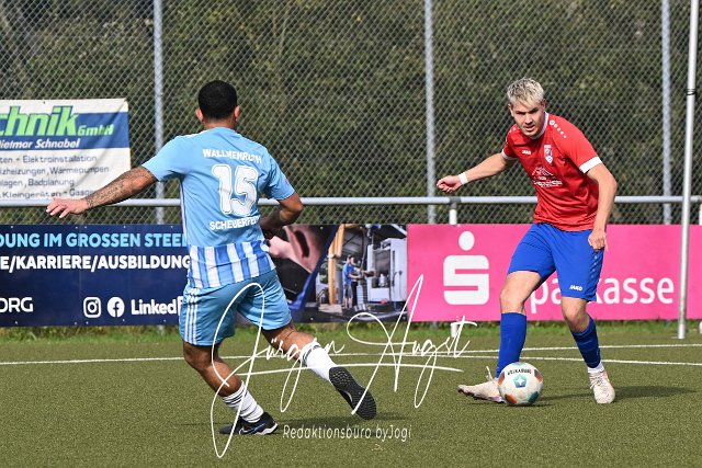 Fussball, Bezirksliga Ost, SG Neitersen-Altenkirchen (rot-blau) vs. SG Wallmenroth (hellblau), 22.09.2024 |