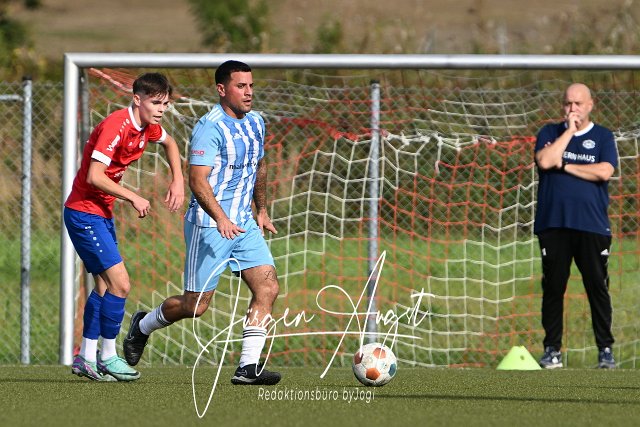 Fussball, Bezirksliga Ost, SG Neitersen-Altenkirchen (rot-blau) vs. SG Wallmenroth (hellblau), 22.09.2024 |
