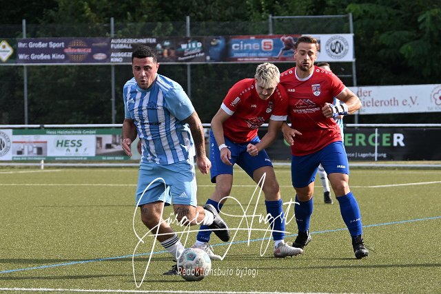 Fussball, Bezirksliga Ost, SG Neitersen-Altenkirchen (rot-blau) vs. SG Wallmenroth (hellblau), 22.09.2024 |