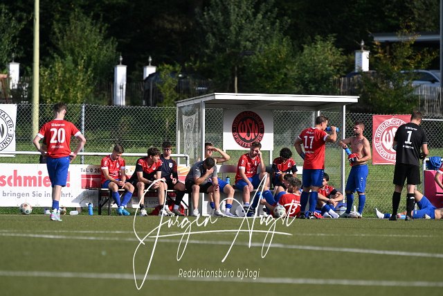 Fussball, Bezirksliga Ost, SG Neitersen-Altenkirchen (rot-blau) vs. SG Wallmenroth (hellblau), 22.09.2024 |