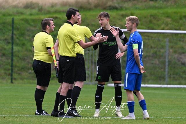 Fussball, Bezirksliga Ost, SG Weitefeld (blau) vs. VfB Niederdreisbach (schwarz), 04.10.2024 |
