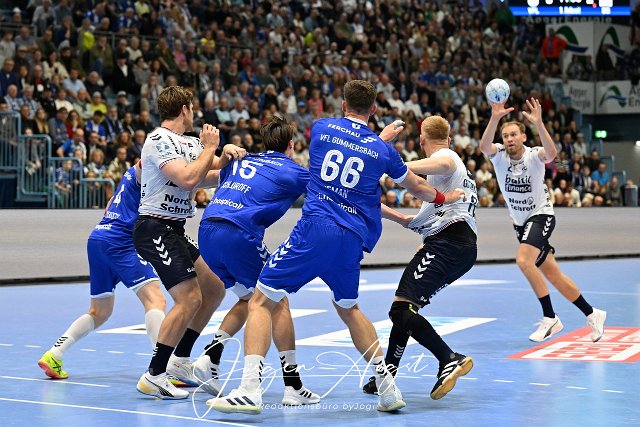 #2 Simon Pytlick (SG Flensburg-Handewitt 2) im Angriff aus dem Rueckraum VfL Gummersbach vs. SG Flensburg Handewitt, Handball, Daikin 1. Bundesliga, 5. Spieltag, Spielzeit 2024-2025, Schwalbe Arena Gummersbach, 06.10.2024 Foto: Eibner-Pressefoto/Juergen Augst |