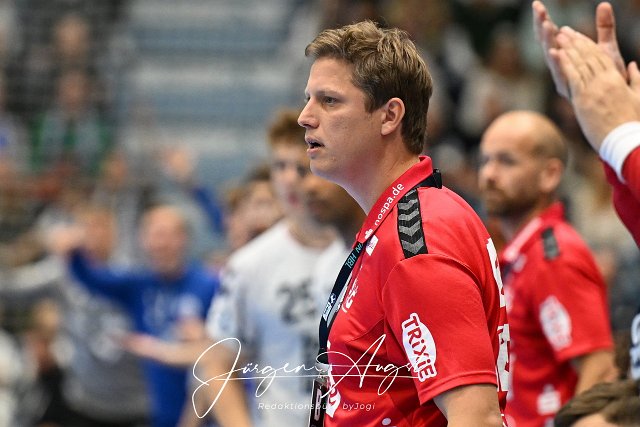 Nicoley Krickau (SG Flensburg-Handewitt Trainer) fassungslos VfL Gummersbach vs. SG Flensburg Handewitt, Handball, Daikin 1. Bundesliga, 5. Spieltag, Spielzeit 2024-2025, Schwalbe Arena Gummersbach, 06.10.2024 Foto: Eibner-Pressefoto/Juergen Augst |