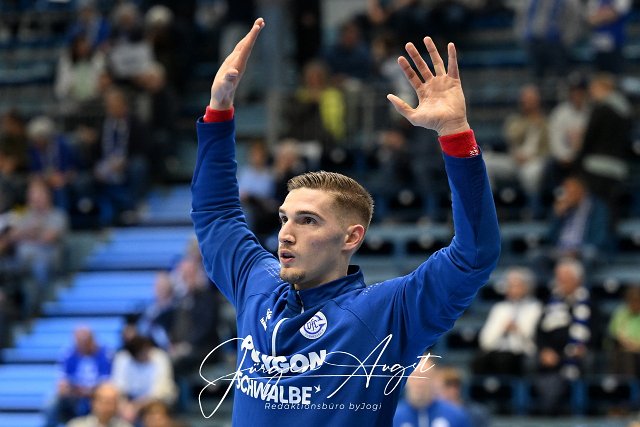 Dominik Kuzmanovic (VfL Gummersbach 1) Handball, EHF European Handball Federation, 2024-2025, Gruppenphase, Hinspiel, VfL Gummersbach (GER) vs. IK Saevehof (SWE), Schwalbe Arena Gummersbach, .08.10..2024 Foto: Eibner-Pressefoto/Juergen Augst |