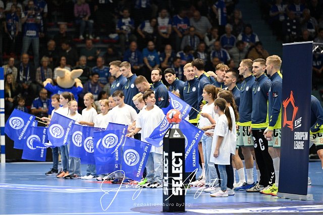 Die Mannschaft des VfL Gummersbach vor dem Heimspiel im EHF-Pokal gegen IK Saevehof in der Schwalbe Arena in Gummersbach Handball, EHF European Handball Federation, 2024-2025, Gruppenphase, Hinspiel, VfL Gummersbach (GER) vs. IK Saevehof (SWE), Schwalbe Arena Gummersbach, .08.10..2024 Foto: Eibner-Pressefoto/Juergen Augst |