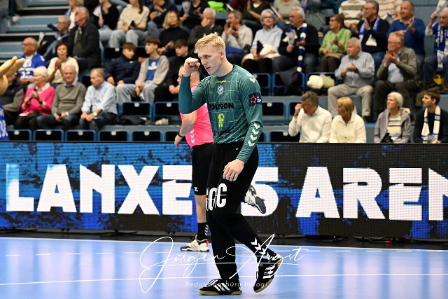 Bertram Obling (VfL Gummersbach 16) jubelt mit geballter Faust Handball, EHF European Handball Federation, 2024-2025, Gruppenphase, Hinspiel, VfL Gummersbach (GER) vs. IK Saevehof (SWE), Schwalbe Arena Gummersbach, .08.10..2024 Foto: Eibner-Pressefoto/Juergen Augst |