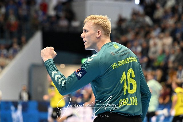 Bertram Obling (VfL Gummersbach 16) jubelt mit geballter Faust Handball, EHF European Handball Federation, 2024-2025, Gruppenphase, Hinspiel, VfL Gummersbach (GER) vs. IK Saevehof (SWE), Schwalbe Arena Gummersbach, .08.10..2024 Foto: Eibner-Pressefoto/Juergen Augst |