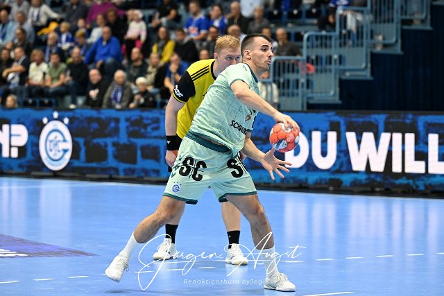 Milos Vujovic (VfL Gummersbach 6) beim 7-Meter Handball, EHF European Handball Federation, 2024-2025, Gruppenphase, Hinspiel, VfL Gummersbach (GER) vs. IK Saevehof (SWE), Schwalbe Arena Gummersbach, .08.10..2024 Foto: Eibner-Pressefoto/Juergen Augst |