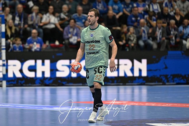 Solobild Kentin Mahe (VfL Gumersbach 22) Handball, EHF European Handball Federation, 2024-2025, Gruppenphase, Hinspiel, VfL Gummersbach (GER) vs. IK Saevehof (SWE), Schwalbe Arena Gummersbach, .08.10..2024 Foto: Eibner-Pressefoto/Juergen Augst |