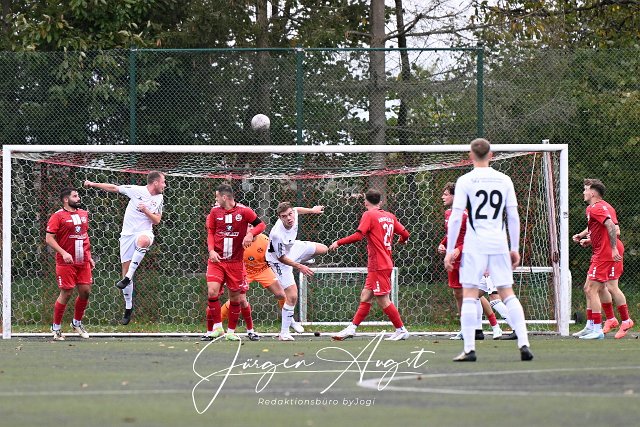 Fussball, Rheinlandliga, SG Malberg (weiss) vs. Ahrweiler BC (rot),12.10.2024 |