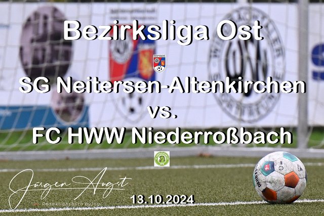 Fussball, Bezirksliga Ost, SG Neitersen-Altenkirchen (rot/blau) vs. FC HWW Niederrossbach (hellblau), 13.10.2024 |