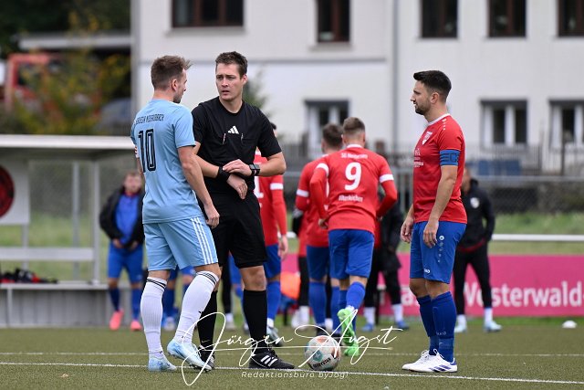 Fussball, Bezirksliga Ost, SG Neitersen-Altenkirchen (rot/blau) vs. FC HWW Niederrossbach (hellblau), 13.10.2024 |