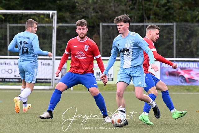 Fussball, Bezirksliga Ost, SG Neitersen-Altenkirchen (rot/blau) vs. FC HWW Niederrossbach (hellblau), 13.10.2024 |