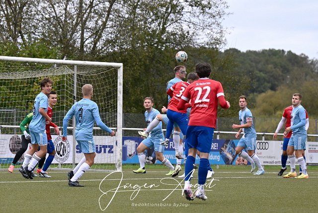 Fussball, Bezirksliga Ost, SG Neitersen-Altenkirchen (rot/blau) vs. FC HWW Niederrossbach (hellblau), 13.10.2024 |