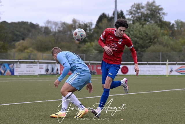 Fussball, Bezirksliga Ost, SG Neitersen-Altenkirchen (rot/blau) vs. FC HWW Niederrossbach (hellblau), 13.10.2024 |