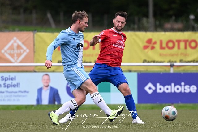 Fussball, Bezirksliga Ost, SG Neitersen-Altenkirchen (rot/blau) vs. FC HWW Niederrossbach (hellblau), 13.10.2024 |