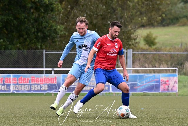 Fussball, Bezirksliga Ost, SG Neitersen-Altenkirchen (rot/blau) vs. FC HWW Niederrossbach (hellblau), 13.10.2024 |