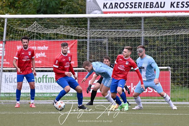 Fussball, Bezirksliga Ost, SG Neitersen-Altenkirchen (rot/blau) vs. FC HWW Niederrossbach (hellblau), 13.10.2024 |