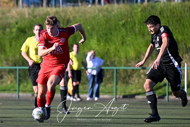 Fussball, Rheinlandliga, SG Malberg (schwarz) vs. SG Schneifel (rot), 26.10.2024 |