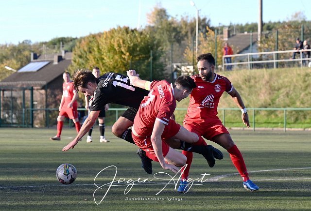 Fussball, Rheinlandliga, SG Malberg (schwarz) vs. SG Schneifel (rot), 26.10.2024 |
