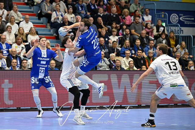 Kentin Mahe (VfL Gumersbach 22) gegeb Leif Tissier (Handball Sportverein Hamburg 7) VfL Gummersbach vs. Handball Sportverein Handball, Daikin 1. Bundesliga, 9. Spieltag, Spielzeit 2024-2025, Schwalbe Arena Gummersbach, 03.11..2024 Foto: Eibner-Pressefoto/Juergen Augst |