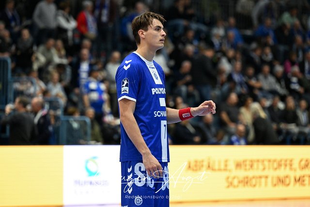 Erfolgreiches Comeback nach langer Verletzungspause fuer Julian Koester (VfL Gummersbach, #7) GER, VfL Gummersbach vs. Bergischer HC, Handbal, DHB-Pokal, Achtelfinale, Spielzeit 2024-2025, 14.11.2024 Foto: Eibner-Pressefoto/Juergen Augst |